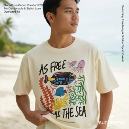 Sunbeams Kaos Oversized Fit Katun 20S — kaos unisex yang lembut di kulit, adem, dan jatuh rapi. Siluet boxy yang clean memberi tampilan effortless dari kampus hingga hangout. Nyaman sepanjang hari, siap dipakai harian di cuaca tropis